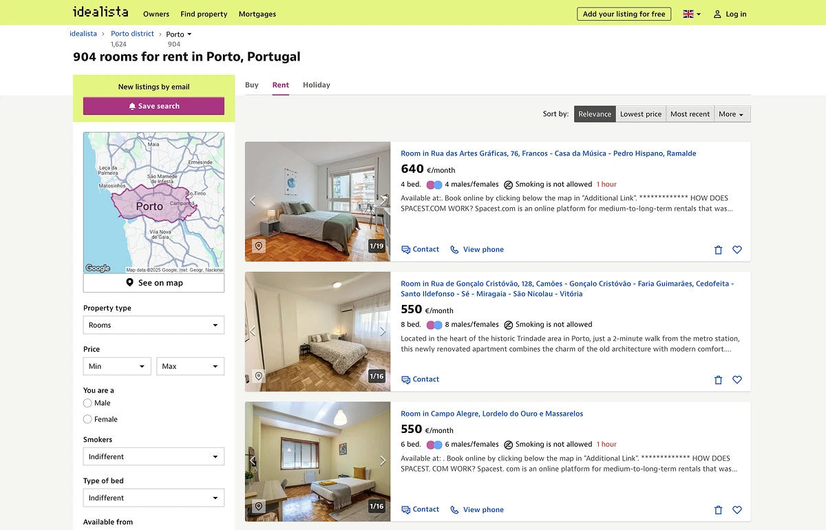 In Lisbon, one-bedroom apartments in central areas are much more expensive than in Porto, and the same goes for rooms in shared flats. Porto usually has lower housing costs and gives you more room in your budget, especially if you’re flexible about where you live.